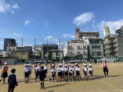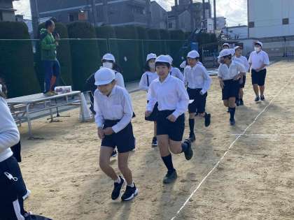 今週は運動週間です。今日は2.4.6年生がチャレンジしました。久しぶりに取り組む持久走ですが、「気持ちいい〜〜」と言いながら走る児童や「10周まであと..周」と言いながら走ったりしていました。めあてをしっかりともって日々チャレンジしてほしいと思います。