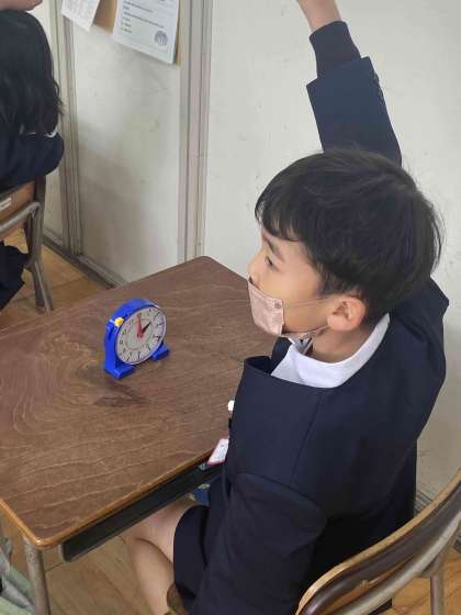今までちょうどの時間と30分は学習しましたが、5分や10分は学習していませんでした。今日は全員で確認しながら学習を進めていくと、最後には多くの挙手があり、学習が深まりました。