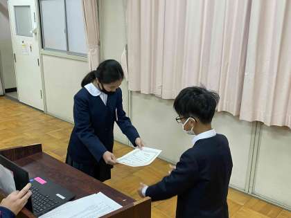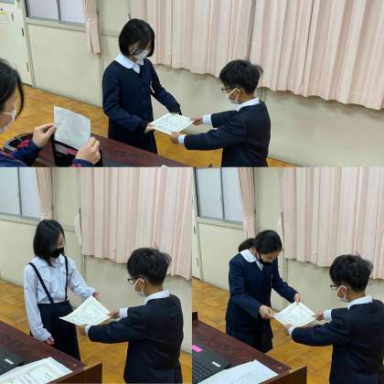 先日行われたかるた大会の表彰式がありました。今後もかるたに親しんでレベルアップを目指してほしいと思います。