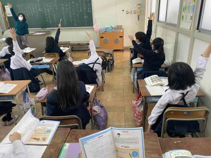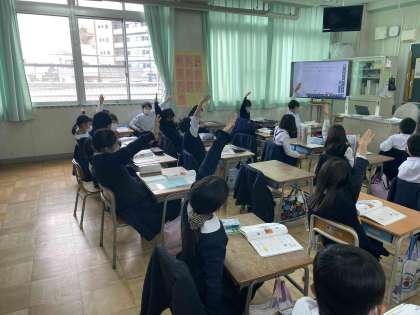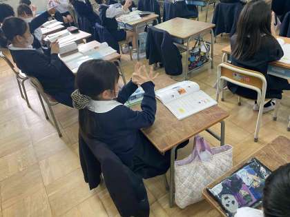 「長さはどれくらいかな」の学習を進めていますが、「これくらい」という長さを手で表現しました。また、長さの単位である【cm】をきちんとセンチメートルと最後まで読む練習をしました。