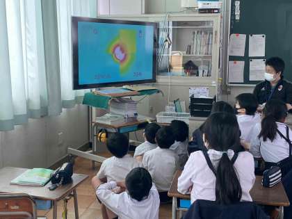金属のあたたまり方について学習していますが、今日は大型テレビを活用し、アルミとステンレスなどのあたたまり方の違いについて学習しました。テレビの前や自分が見やすい位置に移動し、視聴しています。