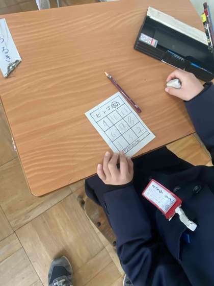今日の児童集会はオンラインでビングゲームを行いました。1年生も数字がきちんと確認できるように工夫されていました。揃いそうで揃わない。リーチの数だけが増えていくなど朝のひと時を全校で楽しみました。