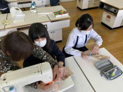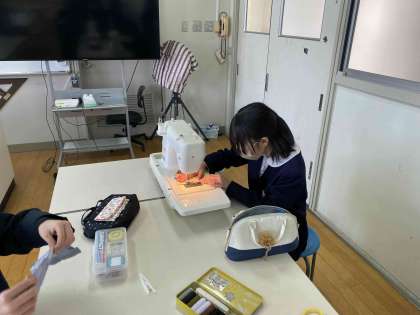 今日は小物入れをミシンで作りました。