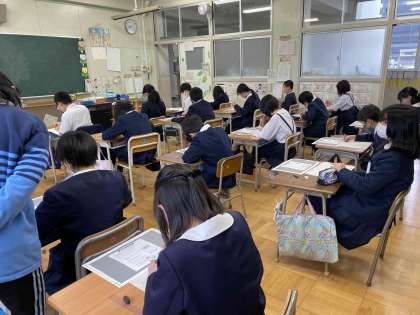 今日は漢字検定の受験日でした。本校は準会場校のため、それぞれの教室で受験することができます。みんな今までの成果を発揮するため、真剣に取り組んでいました。