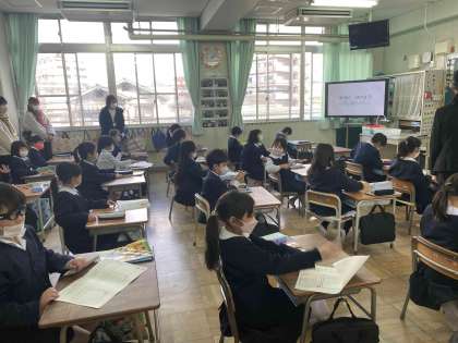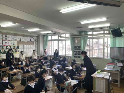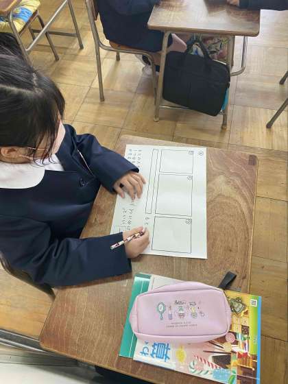 算数科の学習で「半分に分けよう」という学習です。2つに分けた1つ分を2分の1ということを学びました。