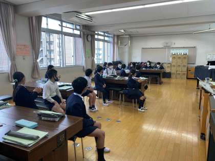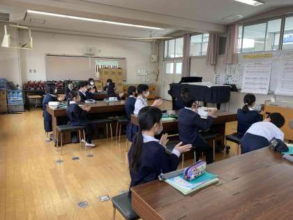 今日の音楽は「ゆかいに歩けば」を2部合唱しますが、スタッカートを意識して腕や体で表現しながら楽しく取り組むことができました。