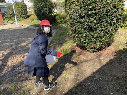 今日は、柏里公園と柏里西公園の掃除に出かけました。今年度は全ての学年で取り組んでいる行事ですが、今回が最終回となります。瓶や缶、タバコの吸い殻など隅っこたくさんのゴミが隠れていました。子どもたちは多くのゴミを見つけて、「ポイ捨てとかしたら掃除する人が大変」と感想を述べていました。