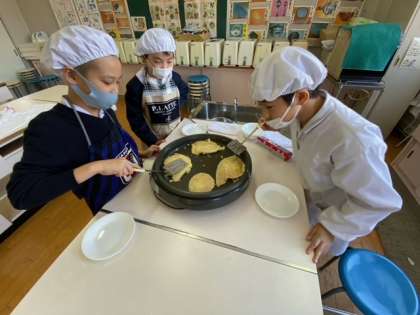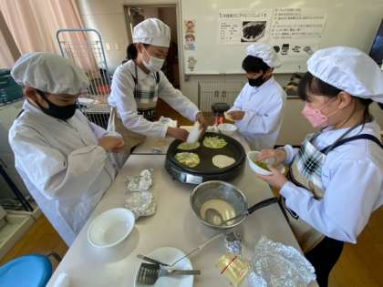 野菜を切るのも焼くのも班で協力して行うことができました。