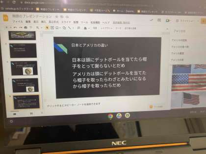 それぞれがパソコンで調べた国やスポーツ、言葉などをパワーポイントを使って発表しました。とても詳しく調べているだけでなく、上手にまとめられていて素晴らしいと感じました。