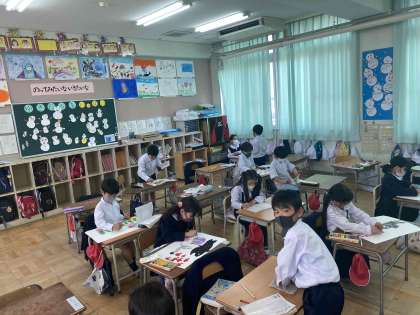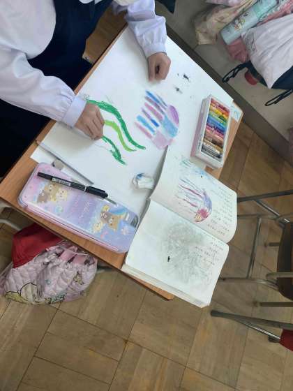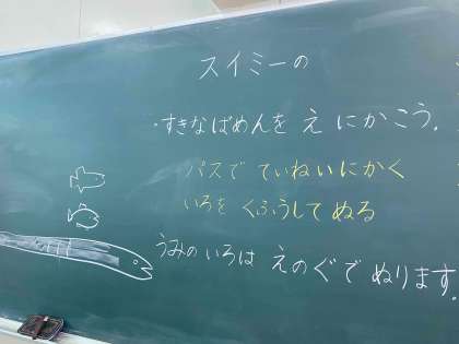 スイミーの好きな場面を絵で表現しました。カラフルで可愛らしく表現している児童が多かったです。