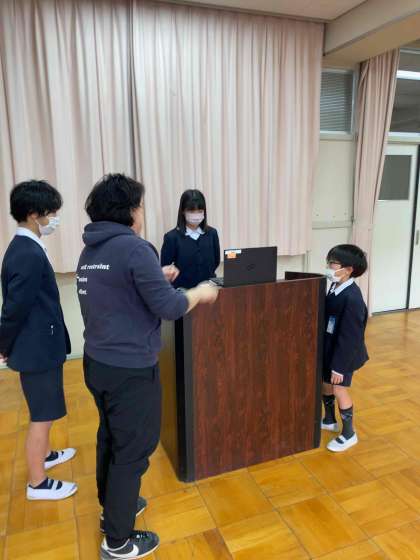 今日の児童集会はmeetで、なぞなぞ集会でした。難しい問題もありましたが、1年生も楽しく参加することができました。