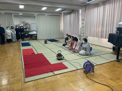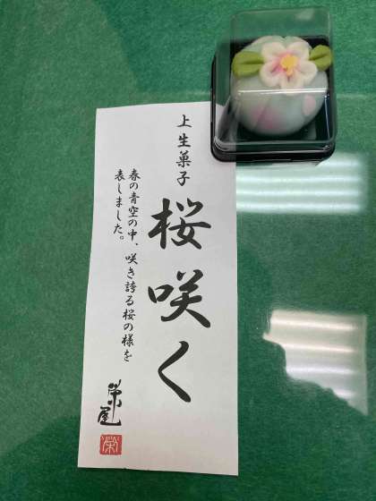 2時間目は1組の茶道教室です。お茶菓子には商店街の栄屋さんが、とても素敵な和菓子をご用意いただきました。