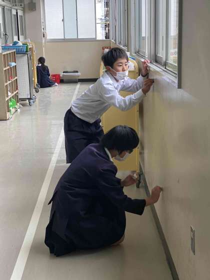 今日は6年生が奉仕活動で学校を綺麗にしてくれました。5時間目の授業中だったので、無言清掃を意識して頑張ってくれました。