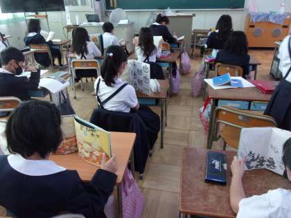 読書タイムです。火曜日水曜日木曜日は毎朝読書をしています。