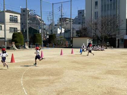 今日はトラックではなく、直線勝負でかけっこしました。運動会の頃よりかなりスピードが上がって凄く速くなりました。
