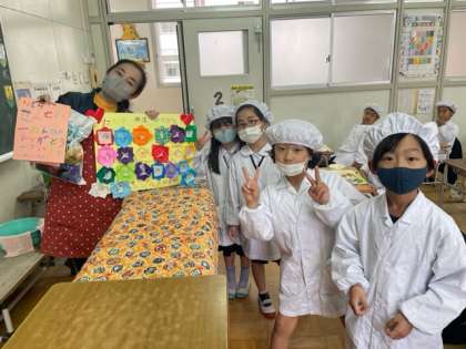 給食の時間、お世話になった田村先生に感謝のお手紙を渡しました!サプライズ大成功です。