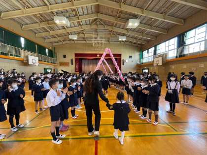 1年生との対面式がありました。教室でしっかり練習して「よろしくお願いします!」と声を揃えて上級生に伝えることができました。