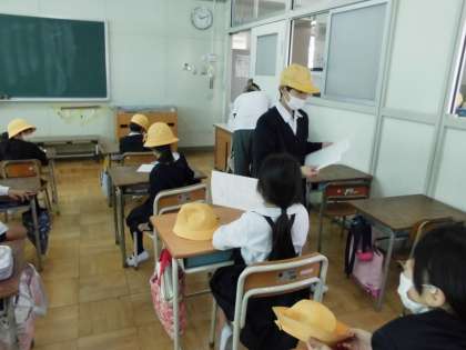 整列の仕方、挨拶の仕方、集合時刻、集合場所など確認しました。新1年生も一緒になって、これから安全に登校できるよう、班のみんなで協力しましょう。