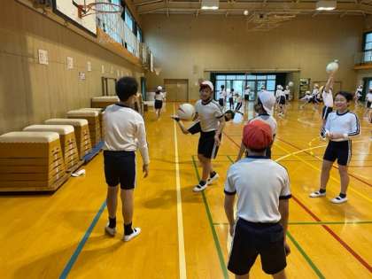 バレーボールをしました。グループみんなで続けてみようを目標に頑張りました!