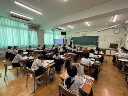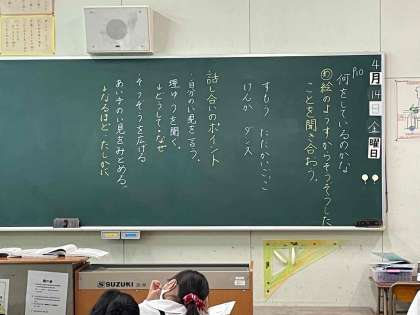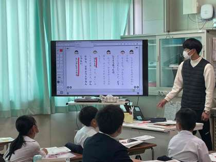 国語の学習もデジタル教科書を活用して黒板と併用して指導を進めています。今日は、絵の様子から想像したことを聞き合っています。