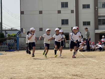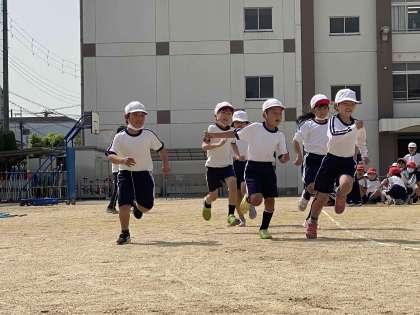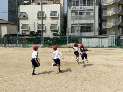 トラックを使って走る練習をしました。来月にはスポーツテストで50m走もあります。