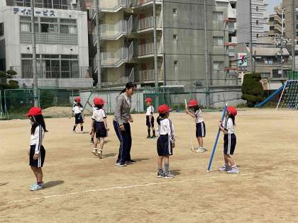 棒を使って運動にも取り組みました。くるっと回ってキャッチしたりペアでいろいろと考えて運動することができました。