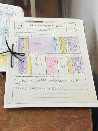 今日は自分の1日の生活時間の使い方について学習しました。生活の中での課題を明らかにして、改善するにはどうすればよいのか一人一人考えて発報しました。