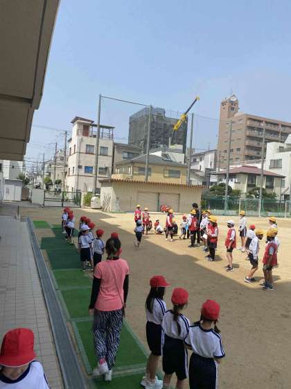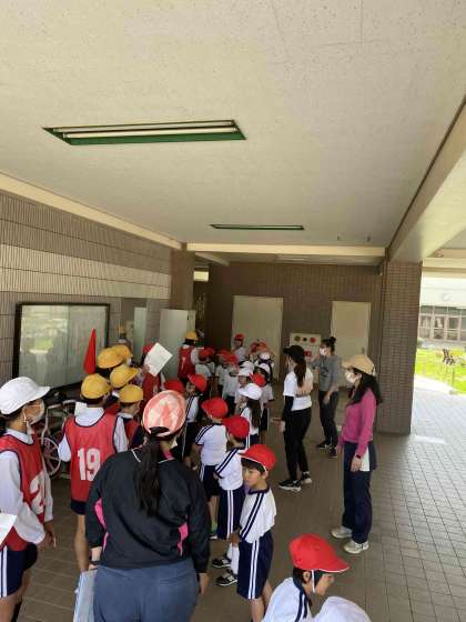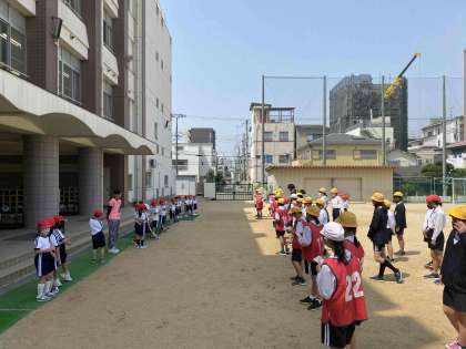 たてわり班での活動に備えて練習を行いました。並んだり運動場で一緒に遊んだりました。何もわからない1年生を優しくリードしていました。