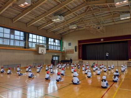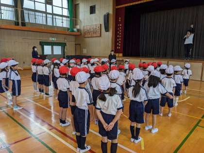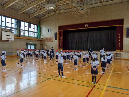 各クラス4列縦隊を組む練習をしました。周りとの間隔をあけ、素早く隊形移動できるようにこれからも練習していきます。遠足の時や、給食の持ち運びなど、2列で並ぶことはこれからたくさんあります。素早く整列できるよう頑張りましょう。