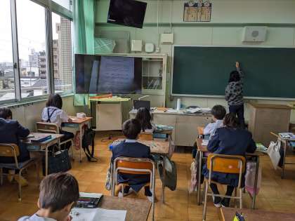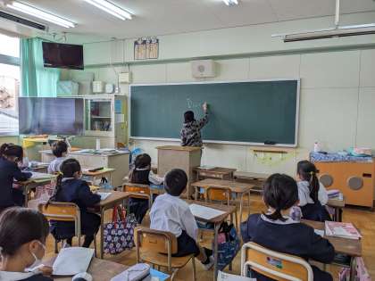 聴力検査のあと、3年生から始まる習熟度別学習の説明を聞きました。マリオ、ルイージ、ヨッシーの3つのコースに分かれて学習します。わくわくたのしそうにしていました。
