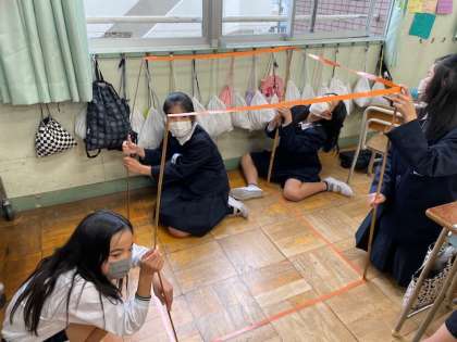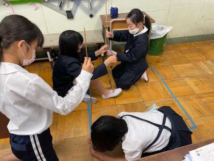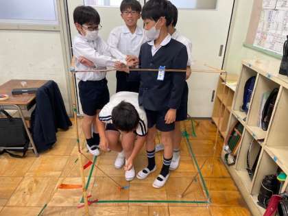1?の立方体実際に作りました。「思っていたより大きい」「4人も入れる広さや!」などと感想を話していました。