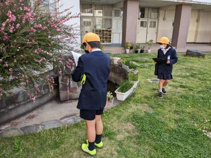 図工のスケッチの題材探しに中庭の植物を撮影しています。新しい発見がたくさんあったようです。