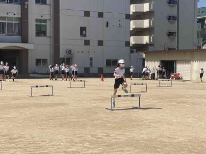 ハードル走の学習も終盤戦です。今日はタイムを測りました3回くらい挑戦している児童も多く見られました。
