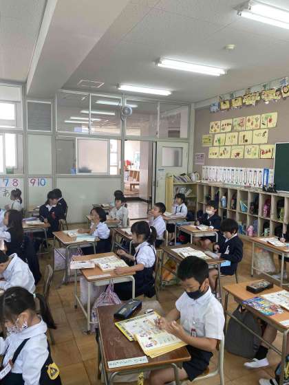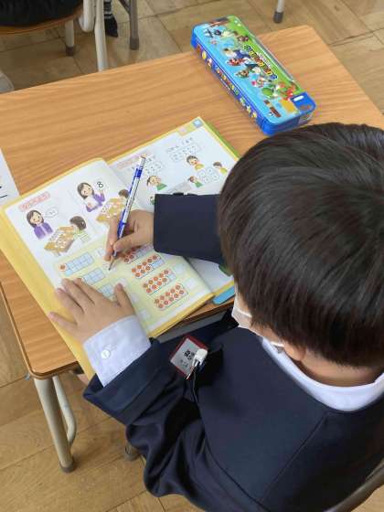 数を数えて丁寧に書き込んでいます。今日は「家庭学習の手引き」も配布していますので、ご家庭でも繰り返し練習してしっかりと覚えることができたらと思います。