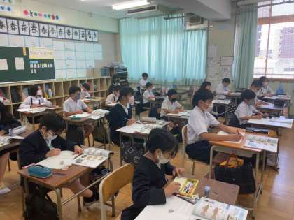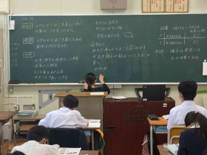 メダカの学習を進めています。今日はメダカの育て方やメダカが卵を産む条件などの学習を行っています。