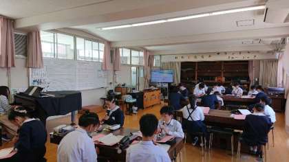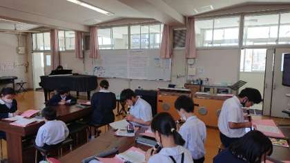 ピアノ伴奏に合わせて、リコーダーで「メヌエット」の二重奏をしました。