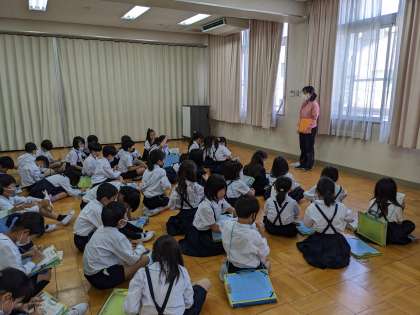 社会見学に行くときのマナーや心がけることをしっかりと聞いています。