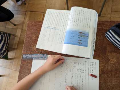 国語ー説明文、動物たちが教えてくれる海の中のくらしについて、泳ぐ速さと体の大きさに関係があることの要旨の確認をしていました。