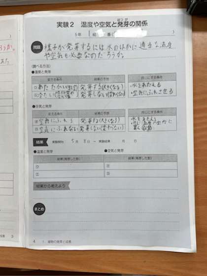 どうしたら発芽するのかよく考え、予想を立てていました。