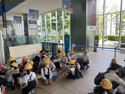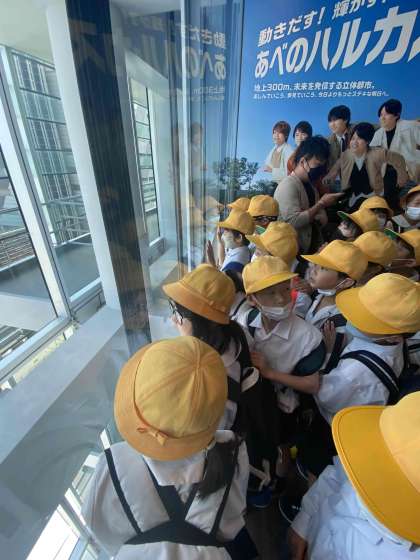 天王寺で下車し、あべのハルカスに到着しました。ガラス張りのエレベーターに大興奮でした。