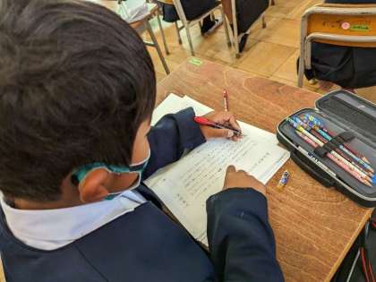 ヤドカリとイソギンチャクの学習をしています。ヤドカリとイソギンチャクが本文に何回出てきているかを数えたり、形式段落がいくつあるか細かく確認しています。正しく情報を読み取ることが、国語力のアップに繋がります。日々の音読も頑張りましょう。