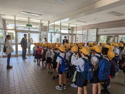 無事学校に帰ってきました!最後に付き添いに行ってくださった校長先生のお話を聞きました。学んだことやわかったことを、忘れないうちに自主学習ノートなどにまとめて、方位などをしっかりと覚えましょう。まずまずの社会見学の態度でした!まだまだ社会見学が続きます。より良い態度で、マナーで頑張って欲しいです