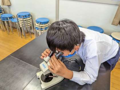 顕微鏡の使い方を学習しています。光の加減や、レンズの倍率を合わせることてではっきりと見えました。指先の指紋の確認をしている児童もいました。思っていたより11歳の指先はしわしわだそうです。