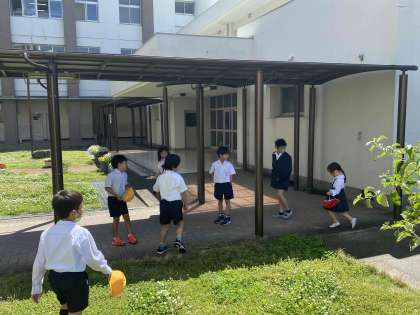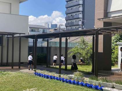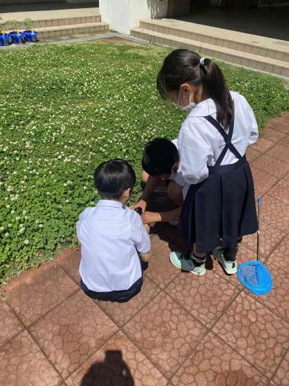 蝶々や虫、四つ葉のクローバーを探す児童で休み時間は大賑わいで癒される素敵な空間になっています。
