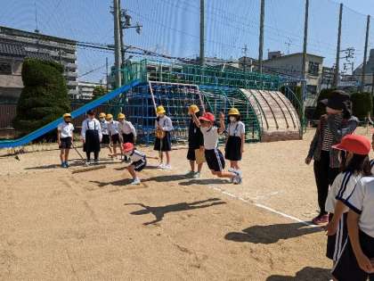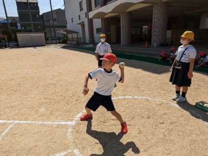 立ち幅跳び、50m 走、ソフトボール投げの3種目を5年生にサポートしてもらいながら計測することができました。