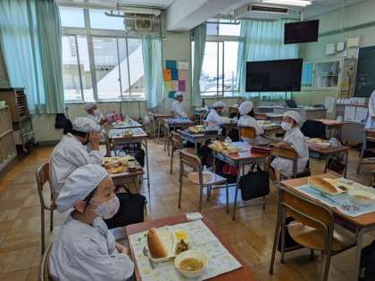 配膳が終わって、いただきますした毎日の完食をめざして、みんなで協力して食べましょう!