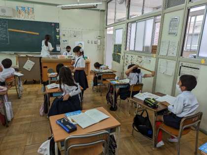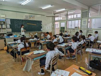 黒板のはしからはしまでの長さを実際にはかってみると…。学習したことを実際の生活にいかしていきたいと思います!