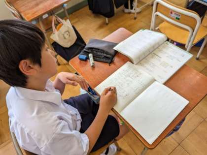 単元のまとめを丁寧に仕上げています。ショートテストの見直しもしっかりとできていました。みんなが学習に集中できるように、一人ひとりがしなければならないことをしっかりと考えましょう。
