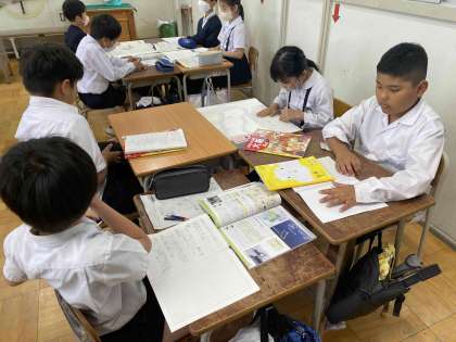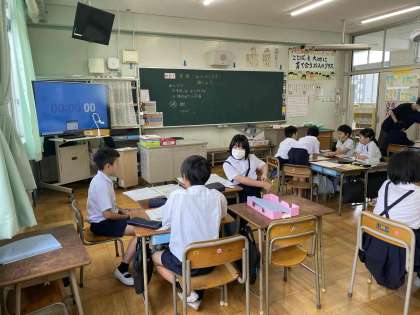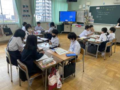 資源ごみの行方を調べようという学習を班で行っています。焼却工場に行ったりパッカー車の出前授業を受けたりしているので、大阪市のゴミ事情に詳しい4年生です。話し合いでも役割を決めてきちんと学習することができています。