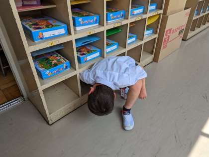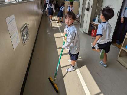 もくもくせいそうに取り組めています!ロッカーの奥までしっかり雑巾がけ。